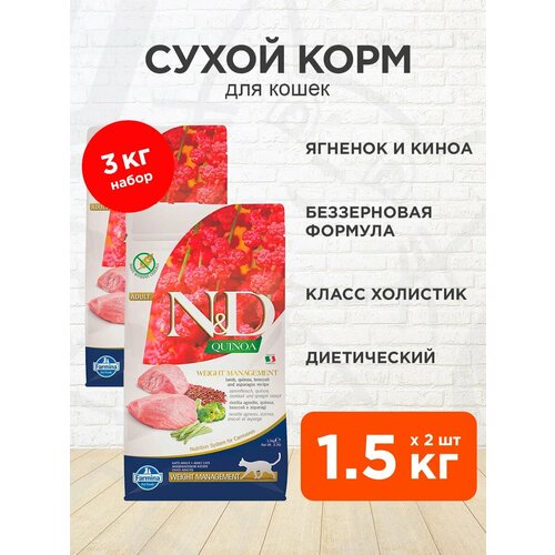 FARMINA CAT N&D GRAIN FREE QUINOA WEIGHT MANAGEMENT LAMB беззерновой диетический для взрослых кошек с ягненком и киноа (1,5 + 1,5 кг): сравнение цен, характеристики, фото, актуальное наличие и цены.