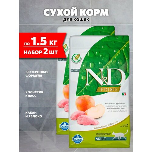 Купить FARMINA CAT N&D PRIME BOAR & APPLE беззерновой для взрослых кошек с кабаном и яблоком (1,5 + 1,5 кг) с доставкой по всей России. FARMINA CAT N&D PRIME BOAR & APPLE беззерновой для взрослых кошек с кабаном и яблоком (1,5 + 1,5 кг): сравнение цен, характеристики, фото, актуальное наличие и цены.