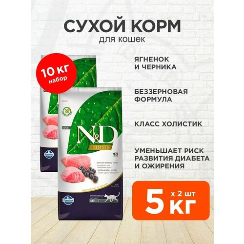 Полноценный сбалансированный беззерновой рацион класса холистик для взрослых кошек с ягненком и черникой.