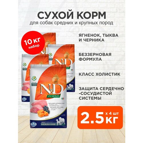 Полноценный сбалансированный беззерновой рацион класса холистик для взрослых собак средних и крупных пород с ягненком, тыквой и черникой.