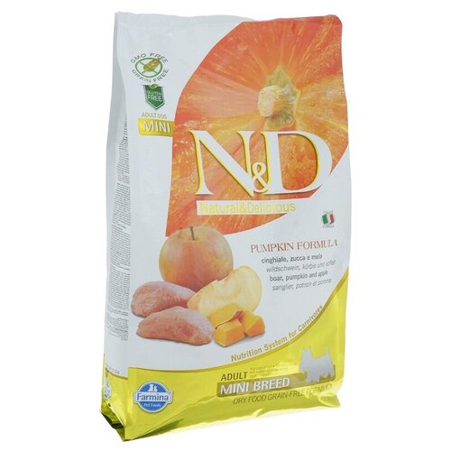 Две пачки корма Кабан, тыква и яблоко. Полнорационный беззерновой сухой корм для взрослых собак мелких пород. Ингредиенты