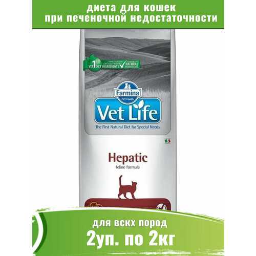 Две пачки корма Farmina Vet Life Hepatic диетическое питание для кошек при хронической печеночной недостаточности. Диета содержит ограниченное количество белка высокого качества, высокий уровень полиненасыщенных жирных кислот и высокий уровень легко усваиваемых углеводов.