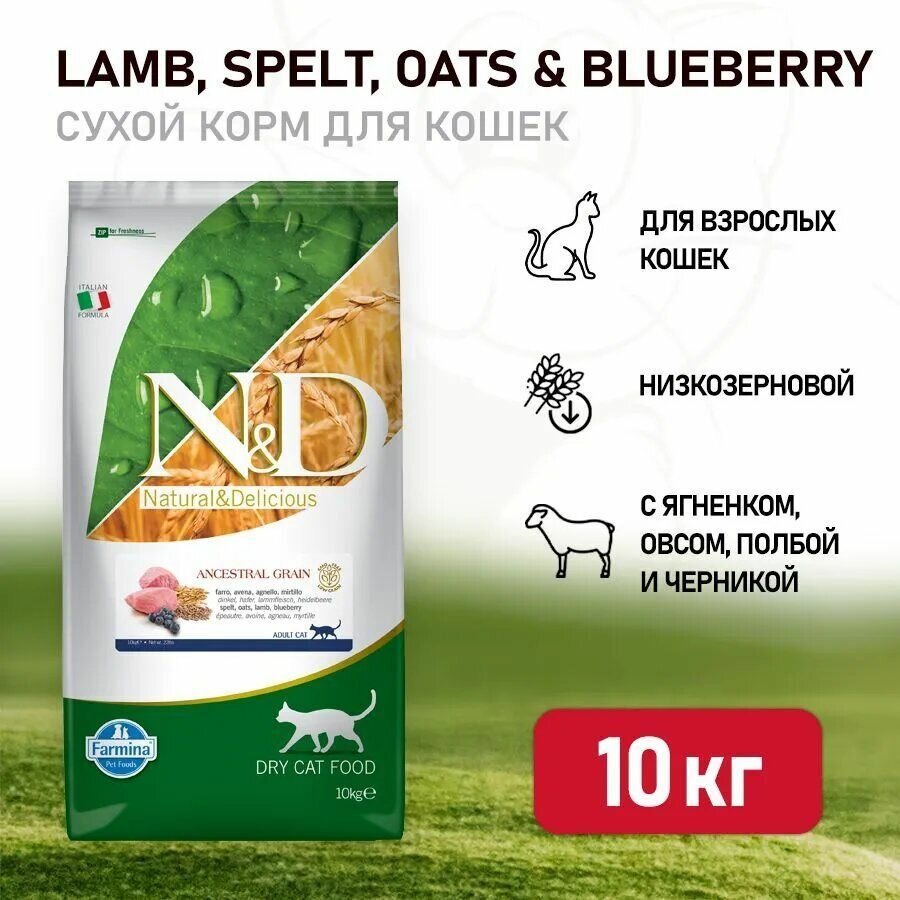 Сухой корм Farmina N&D Cat Ancestral Grain с ягненком и черникой низкозерновой сухой корм для кошек, 10кг: сравнение цен, характеристики, фото, актуальное наличие и цены.