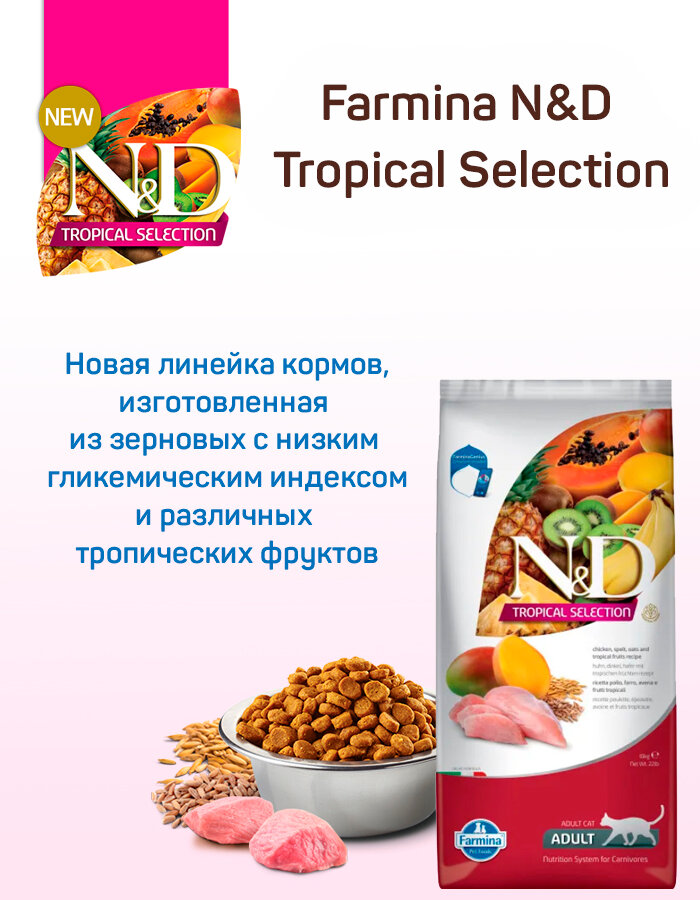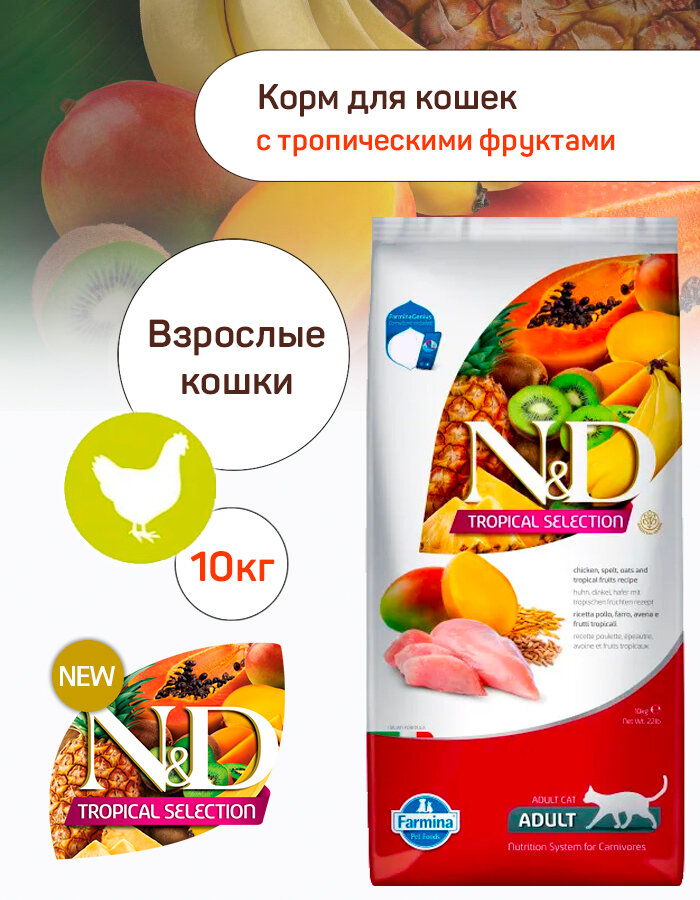 Cухой корм для кошек Farmina Н&Д Тропикал селекшн С курицей 10 кг: сравнение цен, характеристики, фото, актуальное наличие и цены.