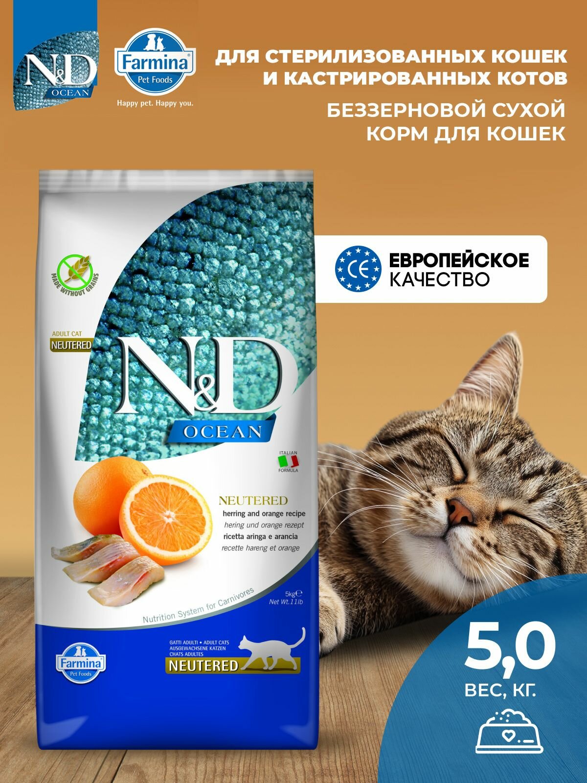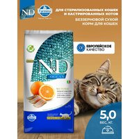 Купить Cухой корм для кошек Farmina 5кг N&D Ocean НД Оушен сельдь и апельсин для стерилизованных кошек и кастрированных котов Фармина с доставкой по всей России.