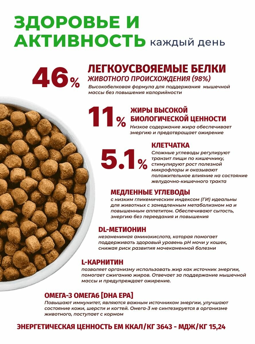 | Особые потребности | беззерновой, гипоаллергенный, для вывода шерсти, для живущих в помещении, для живущих на улице, для здоровья кожи и блеска шерсти, для здоровья костей и суставов, для профилактики стресса, для снижения запаха стула, для стерилизованных/кастрированных, при чувствительном пищеварении, профилактика МКБ, профилактика зубного камня, профилактика избыточного веса |