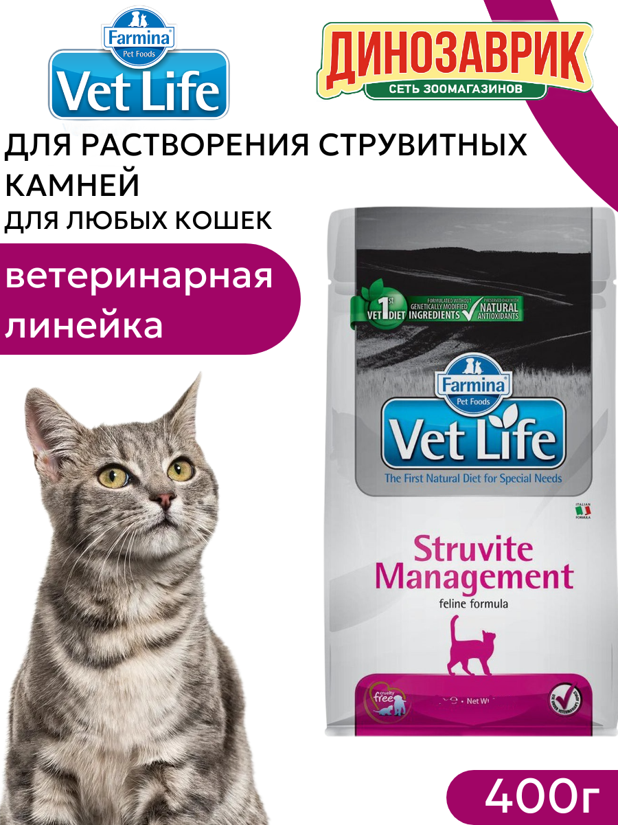 Сухой корм Vet Life Cat Management Struvite для кошек при МКБ Диетический, 400 гр.: сравнение цен, характеристики, фото, актуальное наличие и цены.