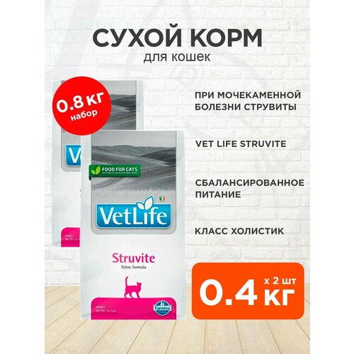Farmina Vet Life Feline Struvite — полнорационный сбалансированный сухой корм для взрослых кошек, разработанный для растворения уролитов струвитного типа. Обладает свойствами подкисления мочи.