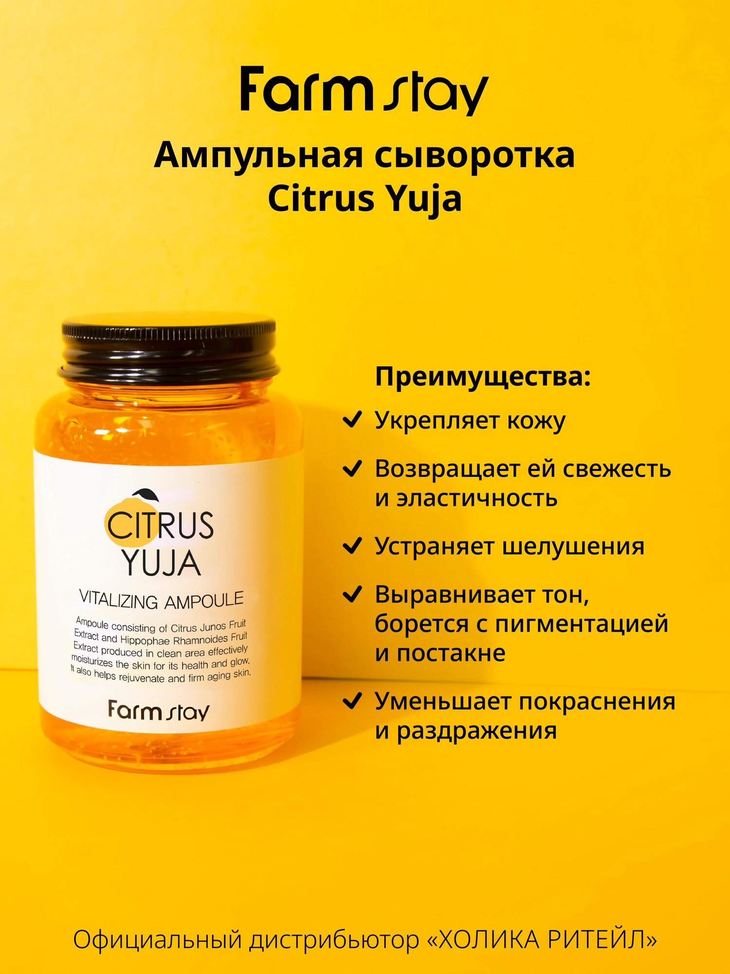 | Состав | Вода, глицерин, дипропилен гликоль, ниацинамид, экстракт плодов юдзу, трегалоза, феноксиэтанол, карбомер, триэтаноламин, ПЭГ-60 гидрогенизированное касторовое масло, каприлил гликоль, лактоза, бутиленгликоль, целлюлоза, динатрий ЭДТА, ксантановая камедь, экстракт плодов грейпфрута, экстракт плодов хеномелеса китайского, экстракт облепихи крушиновидной, экстракт плодов мандарина уншиу, аденозин, 1,2-гександиол, гиалуронат натрия, гидроксипропил метилцеллюлоза, эфиры жожоба, CI 77492, токоферил ацетат, аскорбил пальмитат, экстракт плодов апельсина, этилгексилглицерин, CI 19140, CI 15985, ароматизатор, лимонен, линалоол. |