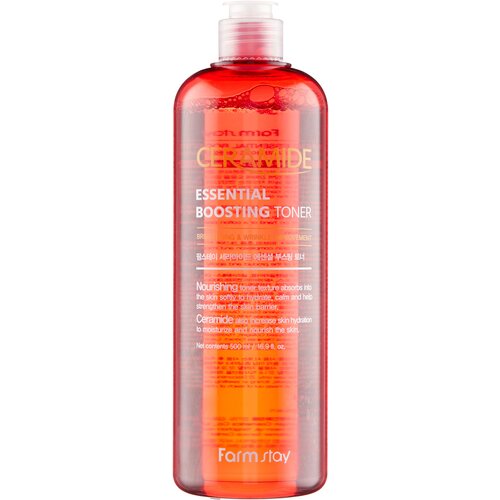 Тонер-бустер с керамидами FarmStay Ceramide Essential Boosting Toner выполняет функцию защиты кожи от свободных радикалов, насыщает эпидермис влагой, выступает катализатором выработки кожей естественных керамидов, что замедляет возрастные процессы.