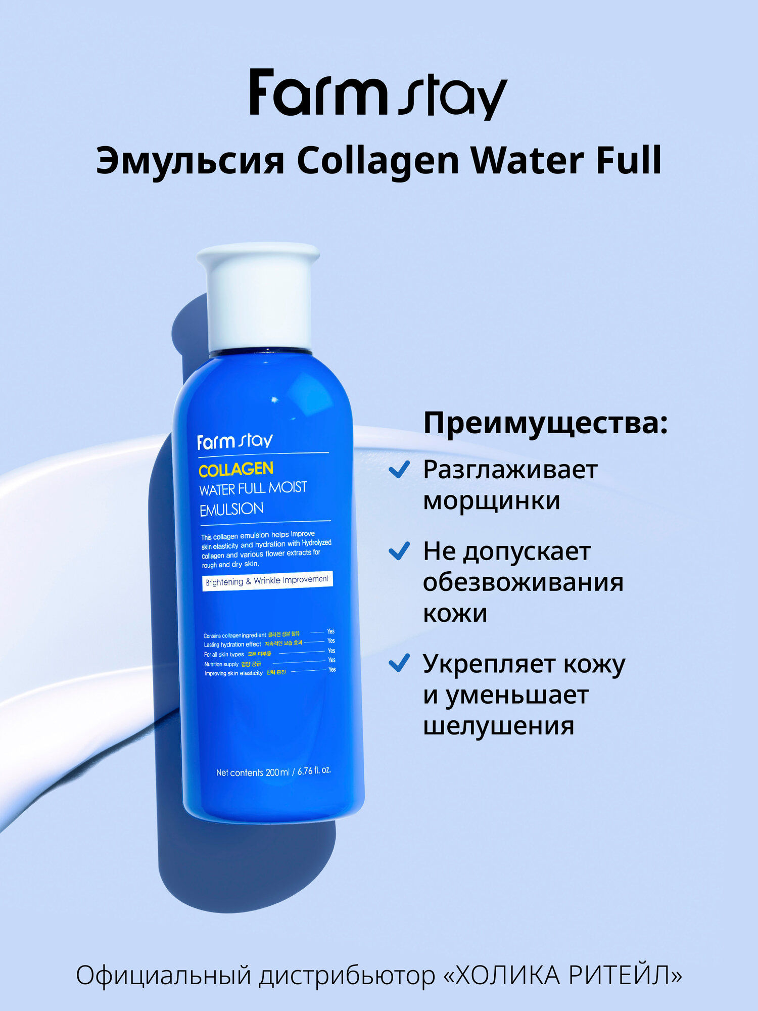 Купить FarmStay Увлажняющая эмульсия для лица с коллагеном Collagen Water Full Moist Emulsion 200 мл с доставкой по всей России. FarmStay Увлажняющая эмульсия для лица с коллагеном Collagen Water Full Moist Emulsion 200 мл: сравнение цен, характеристики, фото, актуальное наличие и цены.
