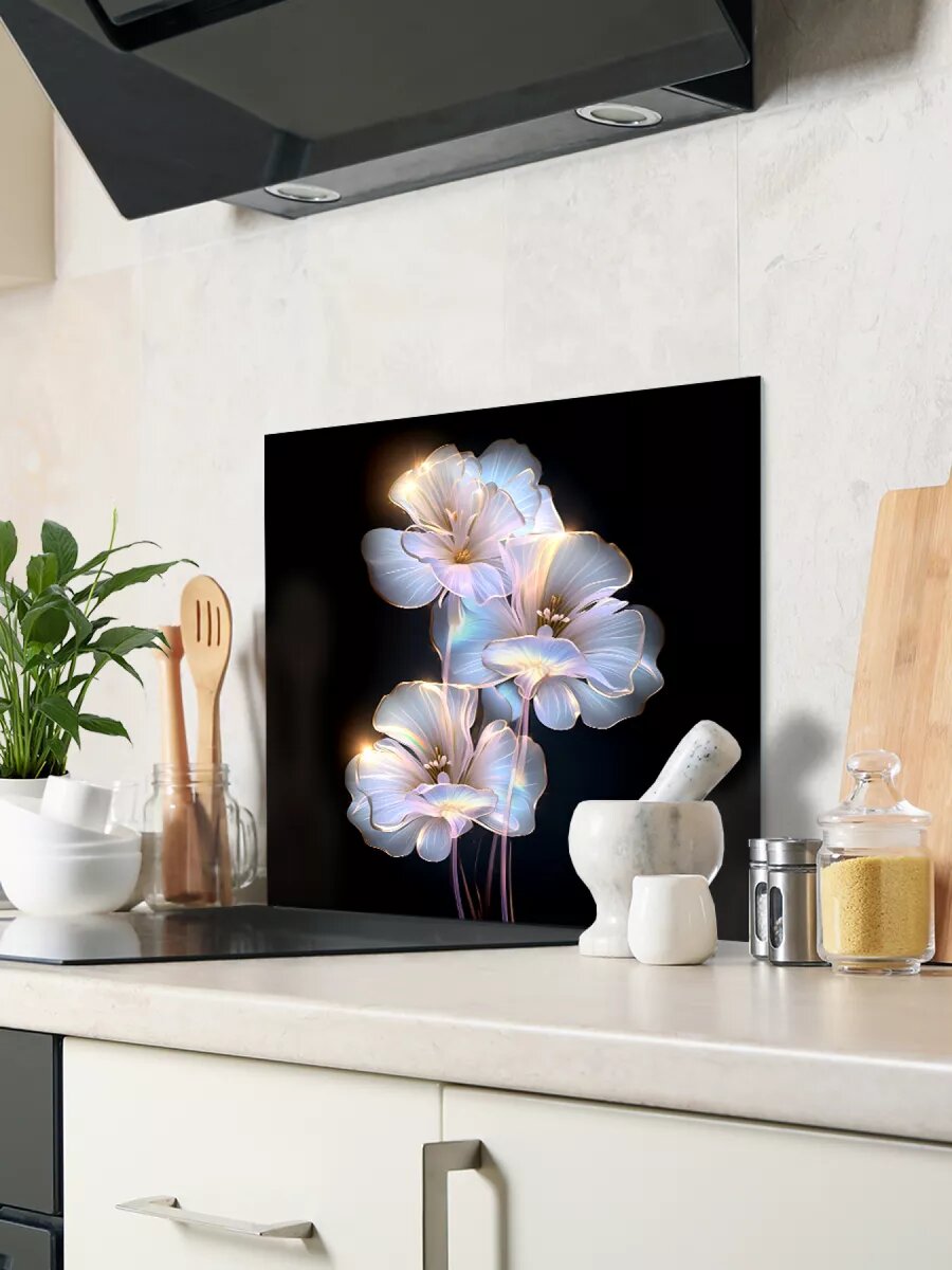 Защитный экран от брызг на плиту 500х500х4мм. Стеновая панель для кухни из закаленного стекла. Фартук для кухни на стену