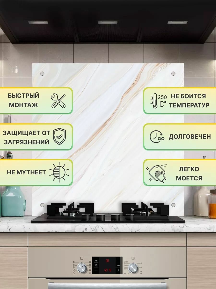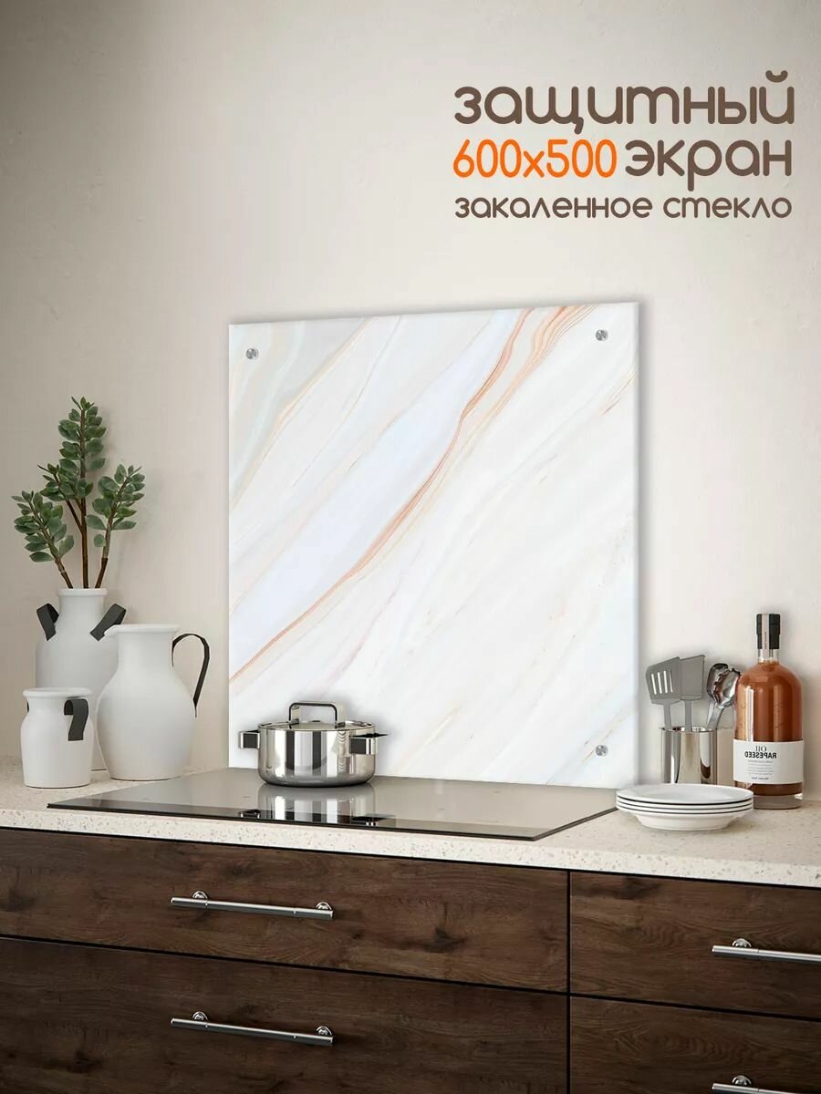 Купить Защитный экран от брызг на плиту 600х500х4мм. Стеновая панель для кухни из закаленного стекла. Фартук для кухни на стену с доставкой по всей России.