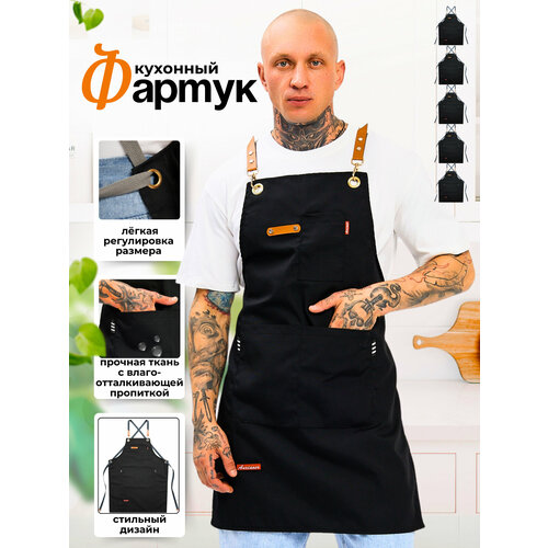 Фартук кухонный женский и мужской — комплект 5 штук, для кафе, бара, ресторана, униформа рабочая для мастера маникюра, парикмахера, официанта, повара, бариста, черный: сравнение цен, характеристики, фото, актуальное наличие и цены.