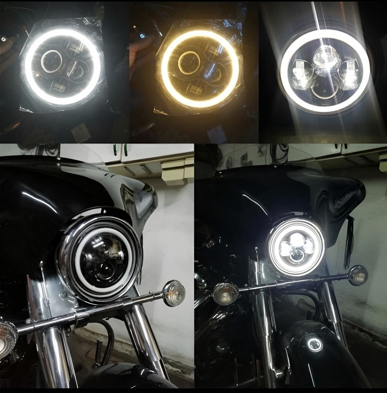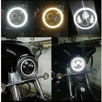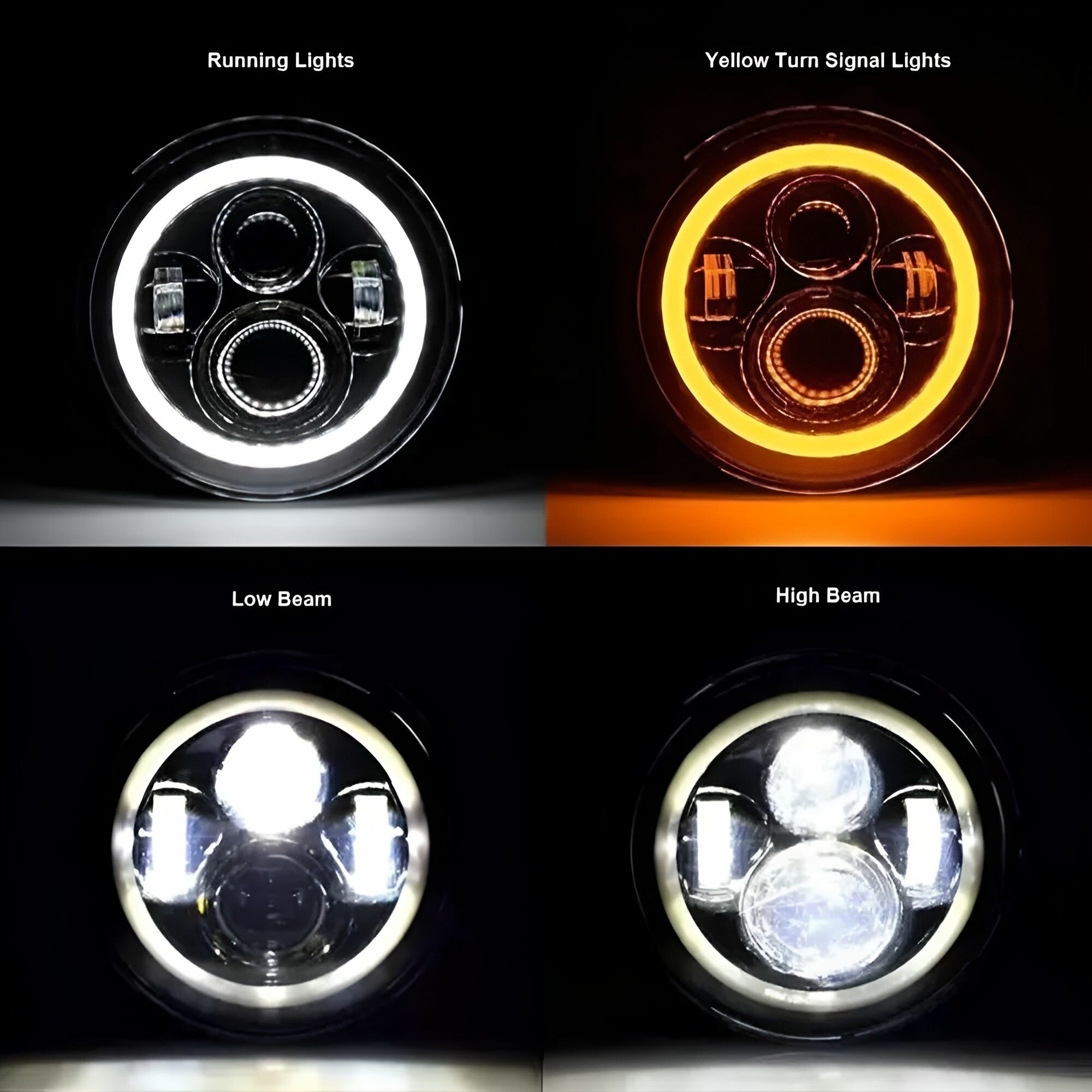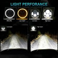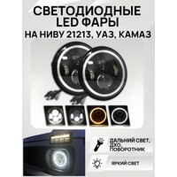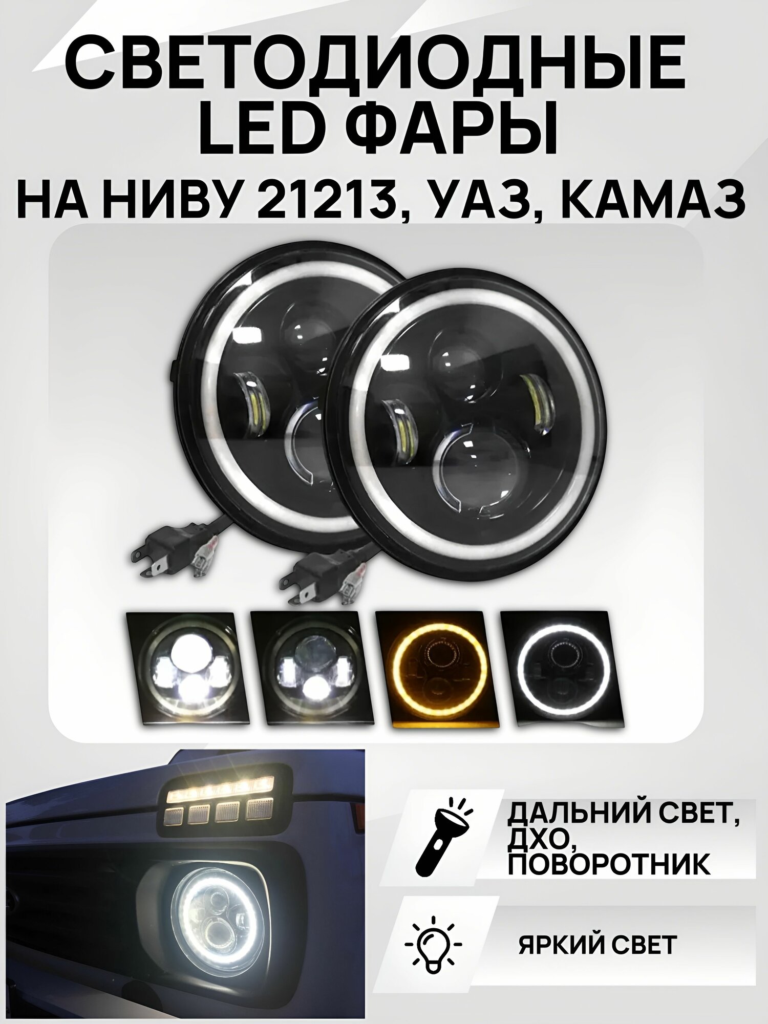 Купить Фары автомобильные ангельские глазки светодиодные LED на ниву 21213, УАЗ, КАМАЗ, мотоцикл / G0435, 2 шт в комплекте / 120W, 7 Дюймов, разъем H4, 12-60V / Ближний, Дальний, ДХО, Поворотник — комплект с доставкой по всей России.