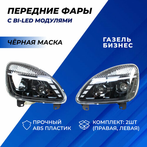 Цена указана за комплект Фары Газель Бизнес 4 Bi-LED модуля комплект с ДХО и плавающими поворотниками черная маска в сборе арт. 33020-3711010 для ГАЗ Г-3302, 2705 комплект 2шт.