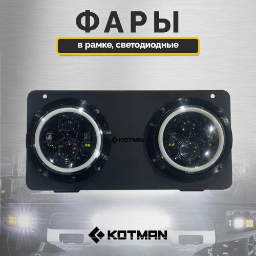 Комплектация: Рамка - металл 1,5мм, Фара LED круглые (ближний + дальний свет) - 2шт, переходник - 2шт, метизы для сборки и установки.