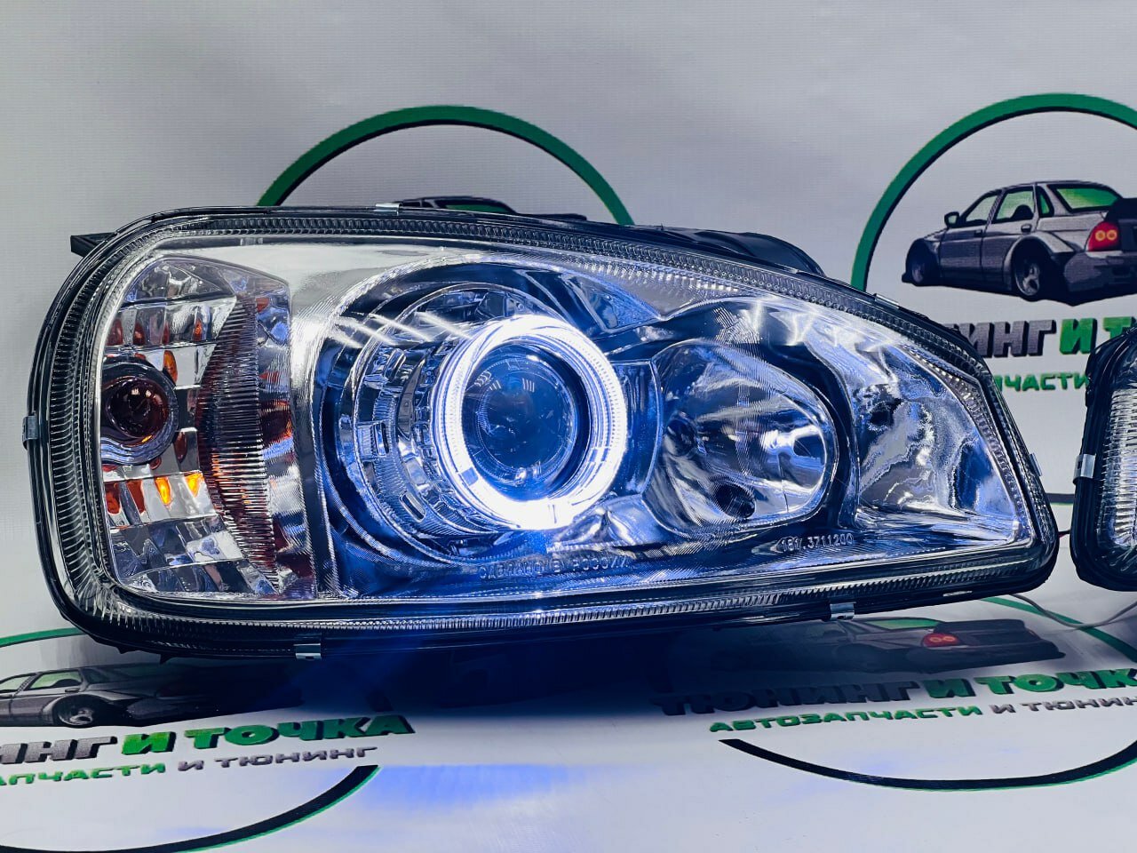 Фары Калина 1 передние тюнинг с би-ксеноновой линзой хром маска - модифицированные передние фары с возможностью установки ксеноновых, светодиодных ламп.