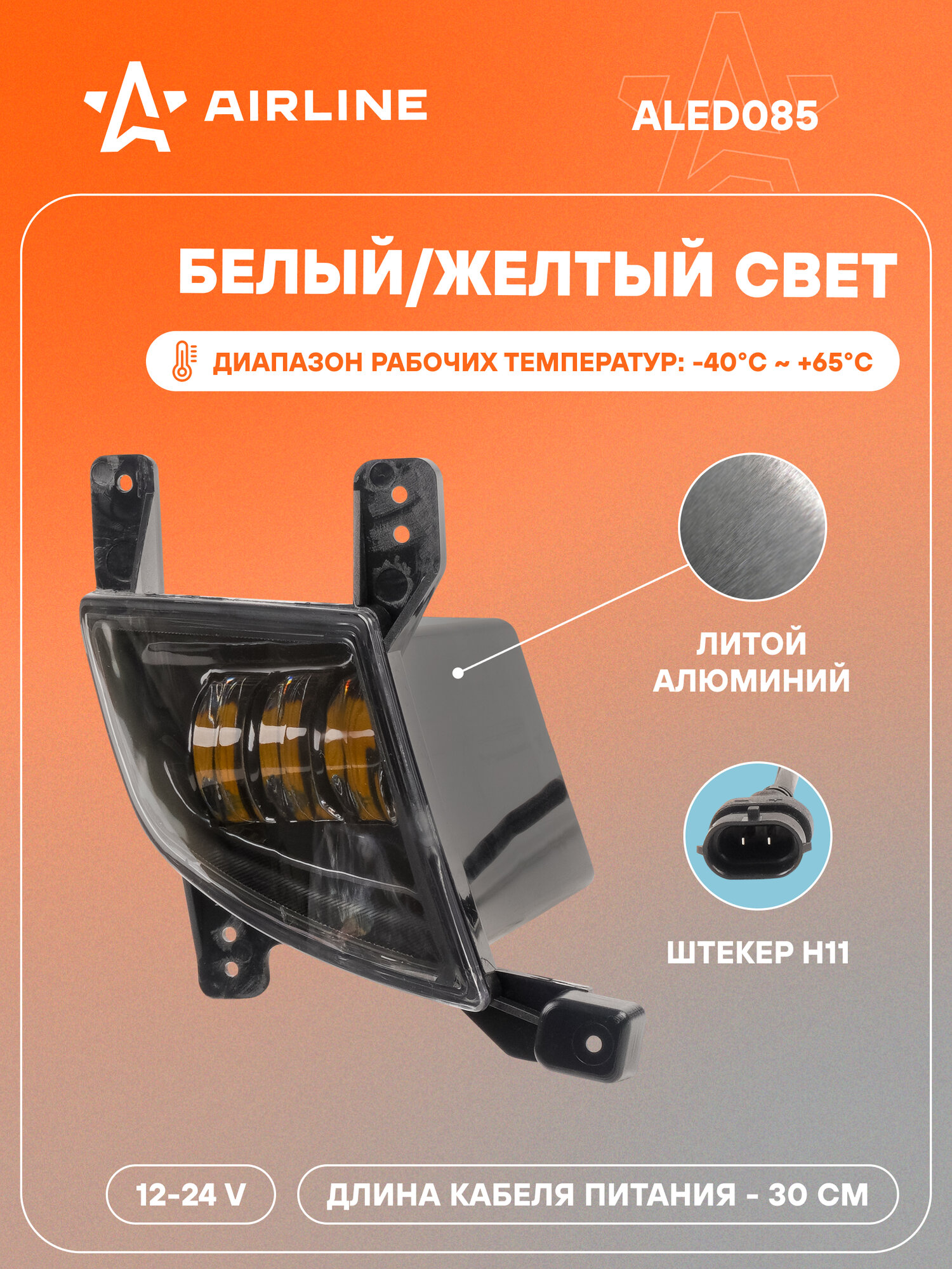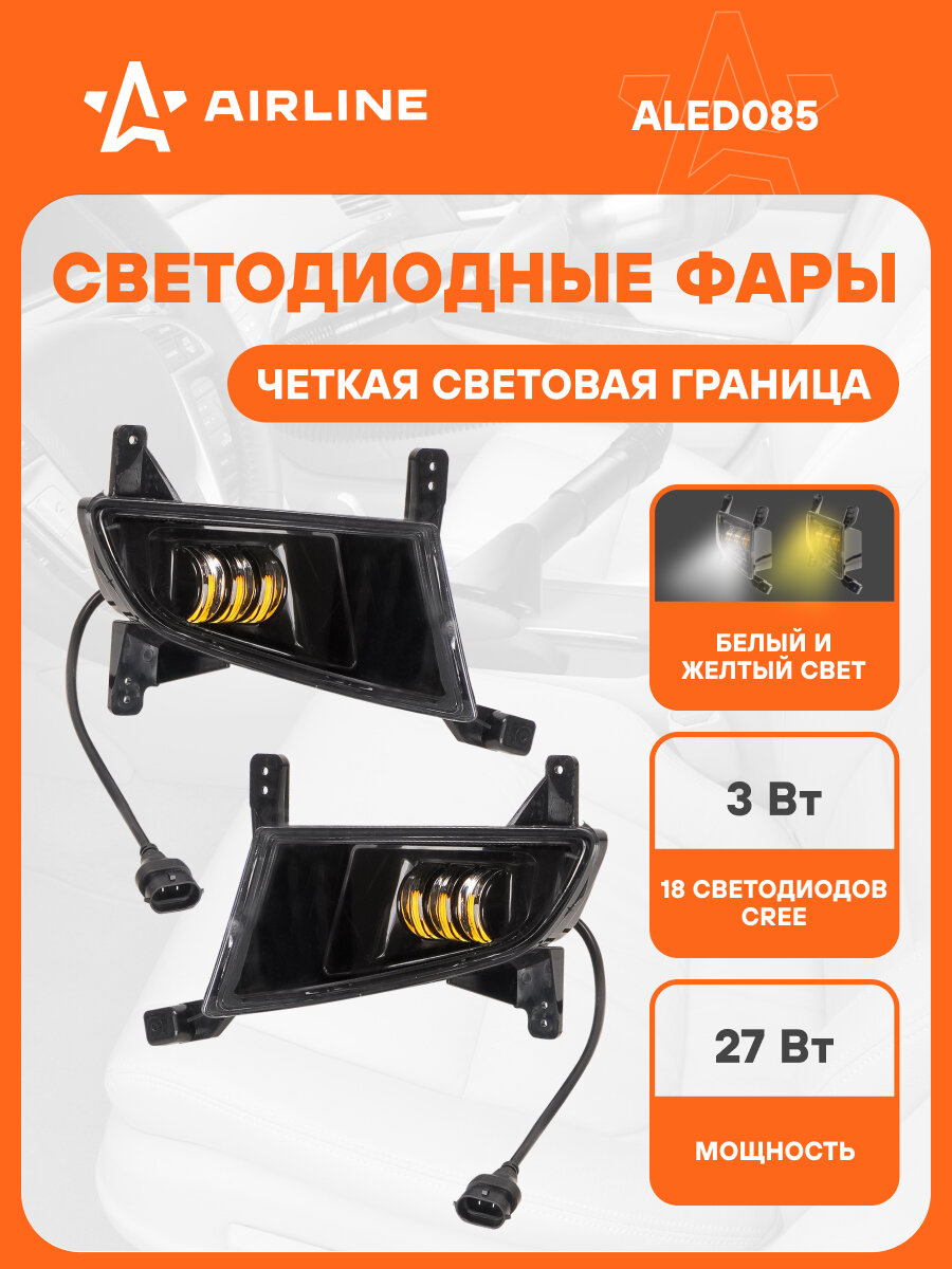 Фары светодиодные комплект 2 шт. с четкой световой границей, Белый/Желтый, 12/24 В AIRLINE ALED085: сравнение цен, характеристики, фото, актуальное наличие и цены.