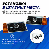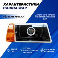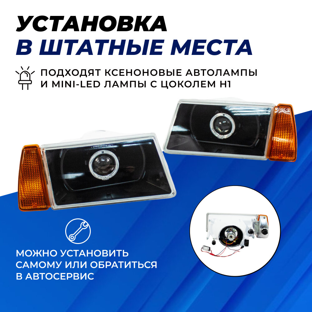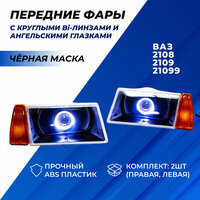 Цена указана за комплект - 2 шт. Фары ВАЗ 2109, 2108, 21099 передние тюнинг с круглой би линзой и гладким стеклом черная маска оранжевые поворотники, левая правая фара, комплект 2шт.