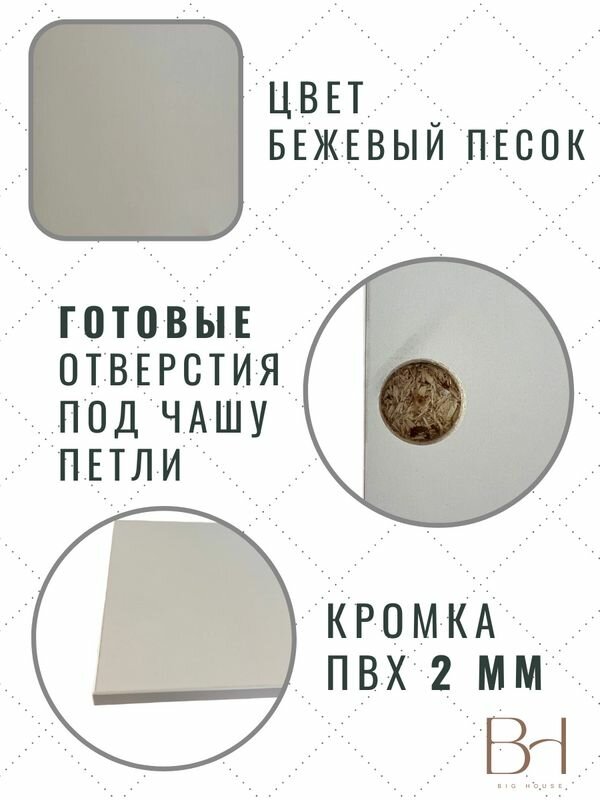 Фасад кухонный универсальный для навесных и напольных шкафов - быстрый способ обновления интерьера кухни. Фасад изготовлен из ЛДСП фирмы Egger толщиной 16 мм. Торцы фасада облицованы кромкой ПВХ, что позволяет защищать их от повреждений, увеличивая срок эксплуатации изделия. На фасаде предусмотрены вырезы под петли. Дверь универсальная, правостороннее и левостороннее использование. Подойдет для верхних и нижних модулей кухни. Декор Бежевый песок – розоватый оттенок бежевого цвета, применимый во множестве сочетаний. Этот тон гармонично дополняет практически любую репродукцию древесины или материала, создавая тёплую, но нейтральную гармоничную комбинацию. Структура ST9 Мягкий матовый придаёт всей палитре однотонных декоров естественную бархатистость на ощупь.