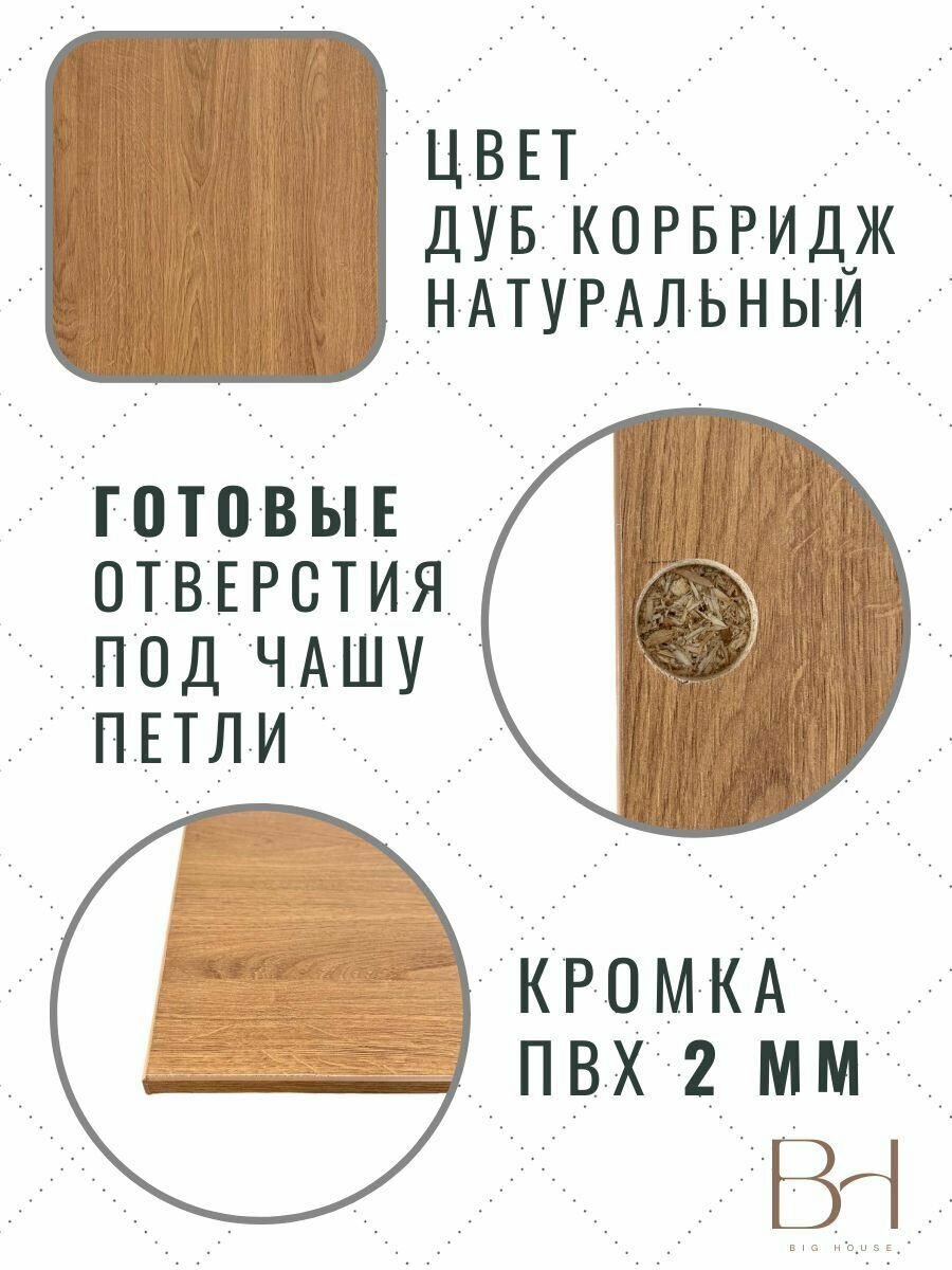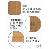 Фасад кухонный универсальный для навесных и напольных шкафов - быстрый способ обновления интерьера кухни. Фасад изготовлен из ЛДСП фирмы Egger толщиной 16 мм. Торцы фасада облицованы кромкой ПВХ, что позволяет защищать их от повреждений, увеличивая срок эксплуатации изделия. На фасаде предусмотрены вырезы под петли. Дверь универсальная, правостороннее и левостороннее использование. Подойдет для верхних и нижних модулей кухни. Дуб Корбридж натуральный – это классическая репродукция дуба с естественным внешним видом и разнообразным древесным рисунком. В его рисунке природные элементы сочетаются с элегантными, поэтому он не смотрится слишком рустикальным. Структура ST12 Поры матовые, имитирующая древесные поры в современной интерпретации, придаёт поверхности мягкость и естественность.