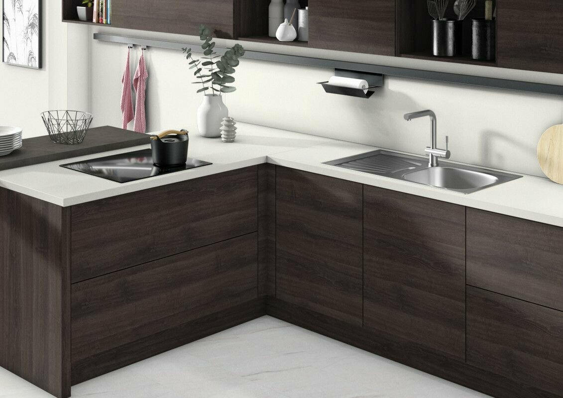 Фасад кухонный универсальный для навесных и напольных шкафов - быстрый способ обновления интерьера кухни. Фасад изготовлен из ЛДСП фирмы Egger толщиной 16 мм. Торцы фасада облицованы кромкой ПВХ, что позволяет защищать их от повреждений, увеличивая срок эксплуатации изделия. На фасаде предусмотрены вырезы под петли. Дверь универсальная, правостороннее и левостороннее использование. Подойдет для верхних и нижних модулей кухни. Дуб Шерман представляет собой очень рустикальную репродукцию дуба с эффектом изношенности, при этом цветовой оттенок антрацит в сочетании со структурой ST32 Филвуд винтажный из серии «Синхронные поры» поддерживает модную тенденцию к использованию чёрных древесных репродукций, вплоть до имитаций сгоревшей древесины.