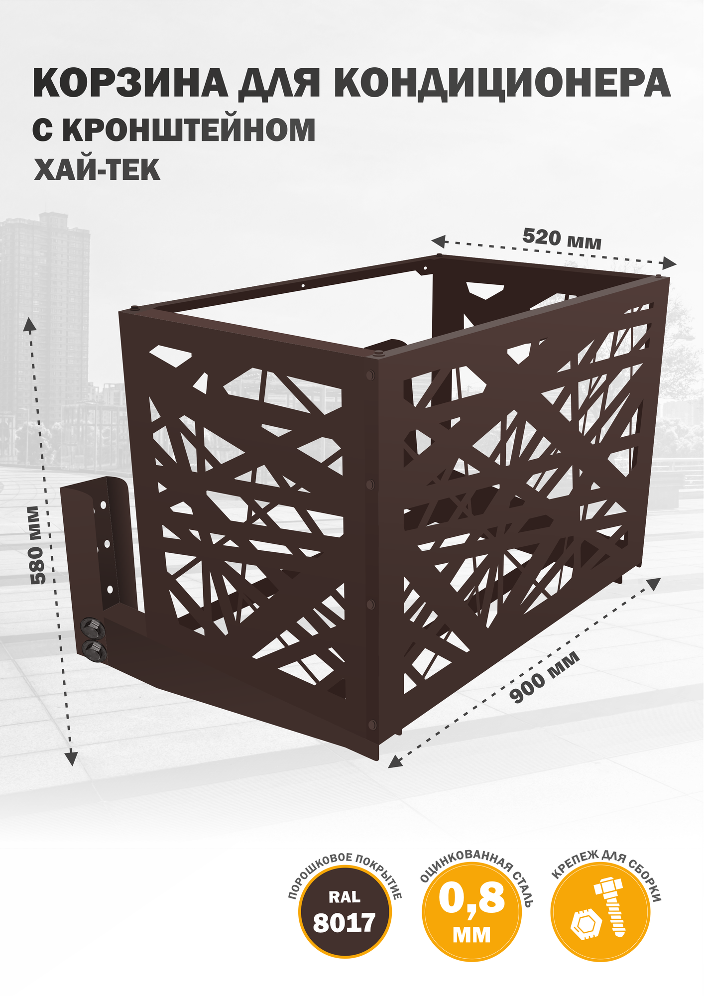 Фасадная корзина с КРОНШТЕЙНОМ металлическая для кондиционера, Стандарт-Сар
