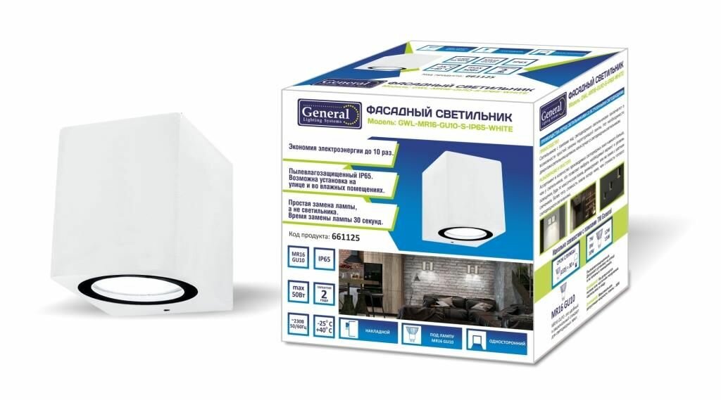 Фасадный светильник General GWL-MR16-GU10-S-IP65 WHITE: сравнение цен, характеристики, фото, актуальное наличие и цены.