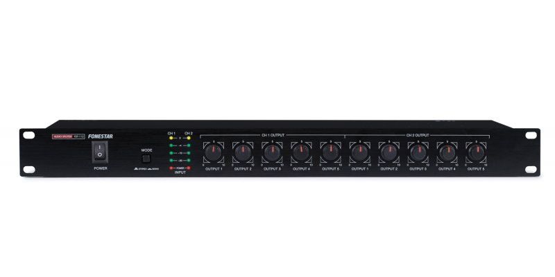 Купить FDT-112 Сплиттер 1 моно вход на 10 моно или 5 стерео выходов (переключаемый). Индикация входного уро, шт с доставкой по всей России.