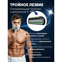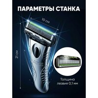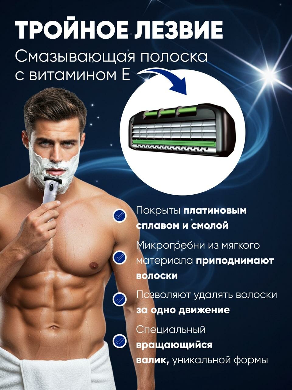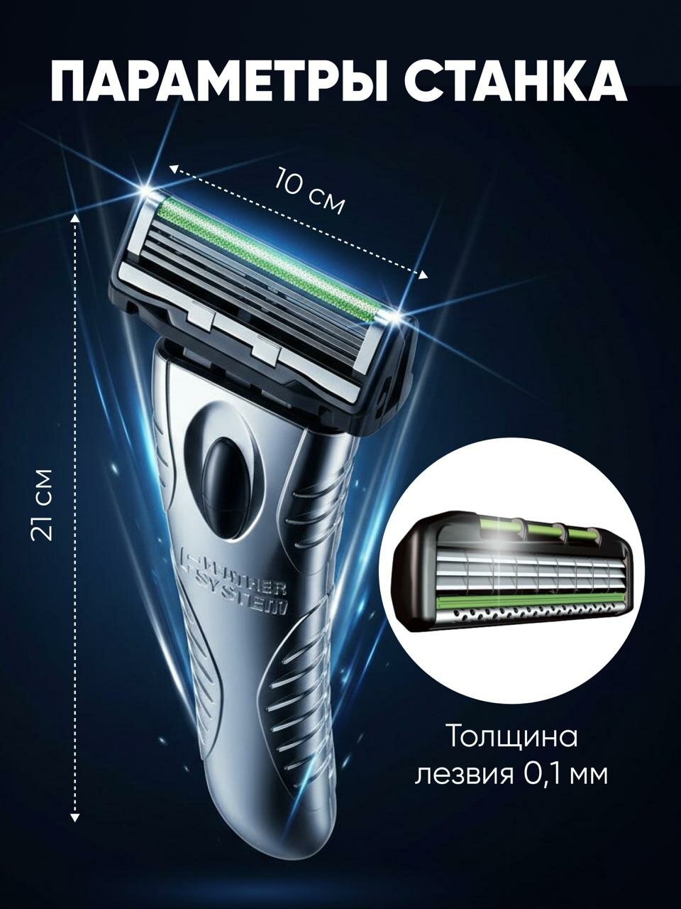 Три супертонких лезвия из нержавеющей стали (0,1 мм), обеспечивают гладкое и чистое бритье. Хромированная рукоятка позволяет удобно держать станок и способствует. комфортному бритью. Специальный направляющий валик, вращаясь и прилегая к коже особым образом, создает легкое натяжение кожи, направляющие пластинки приподнимают волоски, тройное лезвие подрезает волоски у самого основания. Полукруглые ограничители лезвий обеспечивают глубокое бритьё и безопасность. Угол расположения станка позволяет лезвию максимально плотно прилегать к поверхности кожи, обеспечивая сверхчистое бритье.