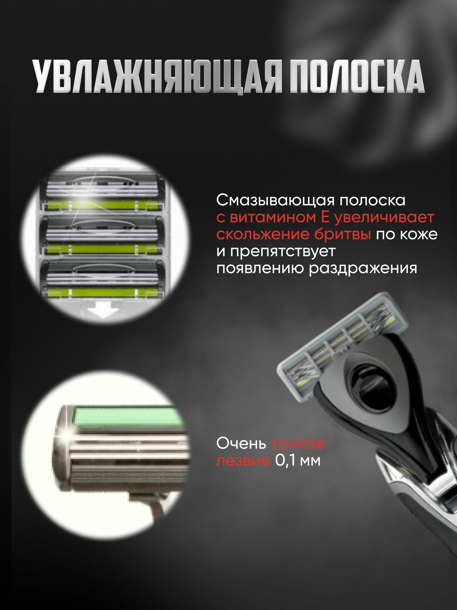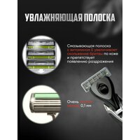 Сменные лезвия с тройным ультратонким лезвием из сверхпрочной стали с особым покрытием, который обладает исключительной остротой и долговечностью. Микрогребни из мягкого материала приподнимают волоски, создавая безболезненное скольжение по коже. Бритвенные лезвия уникальной ступенчатой формы создают необходимое натяжение кожи, что позволяет удалять волоски за одно движение и обеспечивает гладкое бритьё без раздражения. Каждое лезвие движется независимо друг от друга, выбирая оптимальный нажим и подстраиваясь под любые неровности на коже. Плавающая головка в двух плоскостях, повторяет контуры тела и эффективно сбривает волоски, обеспечивая комфортное бритье даже в труднодоступных местах без риска пораниться. Смазывающая полоска с витамином Е увеличивает скольжение бритвы по коже и препятствует появлению раздражения. Современный дизайн бритвы, противоскользящее покрытие и эргономичная форма ручки позволяют выбрать удобное положение в руке, избегая выскальзывания. Способ применения: перед бритьем нанесите на лицо крем или пену для бритья. Равномерно распределите его по коже ладонями, либо с помощью помазка до образования пены. Затем возьмите бритвенный станок и плавными движениями проведите против направления роста волос. После использования станок следует промыть водой и высушить.