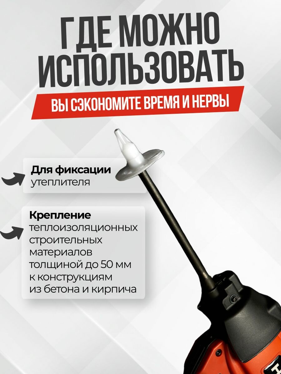 Крепление теплоизоляционных строительных материалов толщиной до 50 мм к конструкциям из бетона и кирпича. Обеспечивает надежное крепление утеплителя к стенам многоэтажных и частных жилых домов, также применяется для утепления производственных и складских помещений, мансард и чердачных помещений.