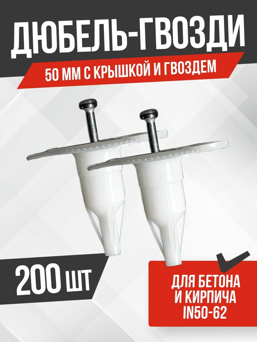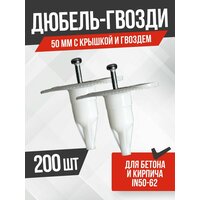 . Длина: 50 мм. Диаметр: 3,7 мм. Метиз в комплекте: гвоздь. Фасовка: 200 шт. Тип фасовки: шт. Тип: для бетона и кирпича. Материал: оцинкованная сталь/пластик.