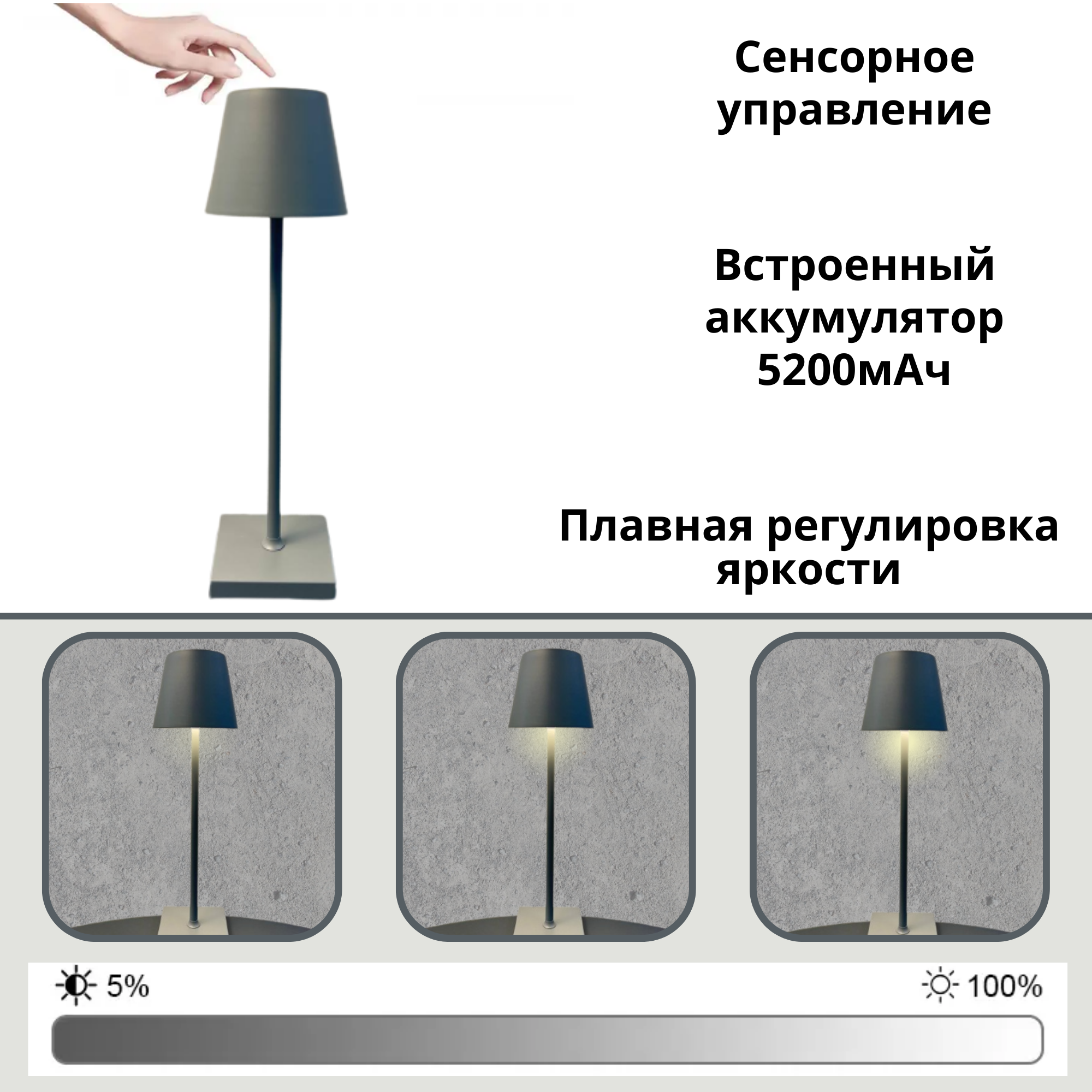 FEDOTOV Беспроводная настольная лампа светодиодная с аккумулятором FED-0056-GREY
