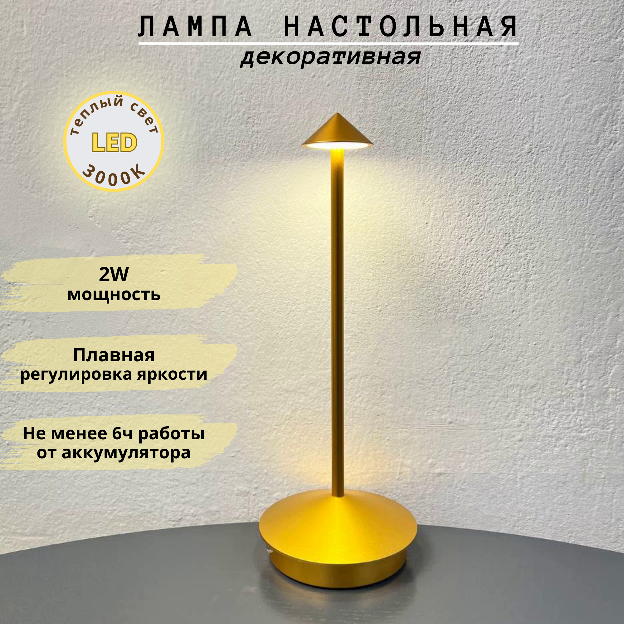 Купить FEDOTOV Беспроводная настольная лампа светодиодная с аккумулятором FED-0057-BR с доставкой по всей России.