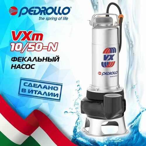 Фекальный насос «Pedrollo VXm 10/50-N» (48SGV91D0A1) высочайшего качества, производство Италия. Погружные электронасосы серии VX с рабочим колесом VORTEX предназначены для использования в быту, коммунальном хозяйстве и промышленности во всех случаях, когда в перекачиваемой жидкости присутствуют твердые примеси во взвешенном состоянии (например, для грунтовых, поверхностных и сточных вод).