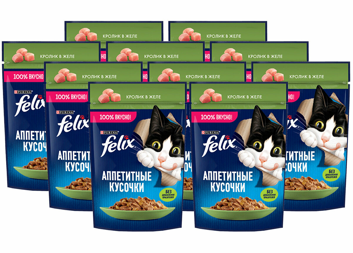 FELIX аппетитные кусочки для взрослых кошек с кроликом в желе пауч 75 гр х 10 шт: сравнение цен, характеристики, фото, актуальное наличие и цены.