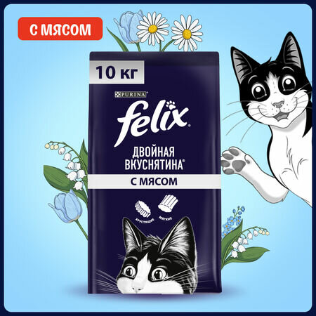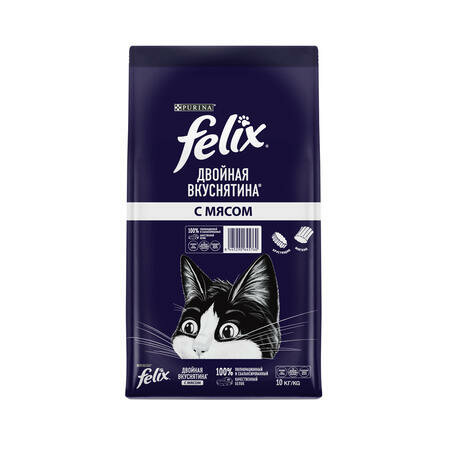 - Любопытство вашего кота заложено природой! И бренд Felix® снова придумал, как его удовлетворить. Представляем FELIX® Двойная Вкуснятина® – сухой корм для кошек, который полностью соответствует потребностям Вашего озорника. Восхитительное сочетание двух текстур в одной упаковке: хрустящие гранулы смешаны с мягкими кусочками для создания невероятного вкуса, перед которым невозможно устоять! Широкий ассортимент позволит коту наслаждаться разнообразием мясных или рыбных вкусов с соблазнительными ароматами. FELIX® Двойная Вкуснятина® - первый сухой корм, созданный под брендом FELIX® для находчивого кота, который знает толк во вкусной еде. И это еще не все! Корм FELIX® Двойная Вкуснятина® содержит оптимальное сочетание сбалансированных минеральных веществ и витаминов, которые на 100% удовлетворят ежедневные потребности Вашего питомца в правильном питании. Состав: злаки, мясо и продукты переработки мяса (мин. 4% мяса на базе восстановленного вещества), продукты переработки растительного сырья, масла и жиры, экстракты растительного белка, глицерол, консерванты, минеральные вещества, дрожжи, сахара, аминокислоты, витамины, красители, антиоксиданты. Гарантированные показатели: белок: 34%, содержание жира: 12,5%, сырая зола: 8%, сырая клетчатка: 3%, незаменимые жирные кислоты: 2,5%. добавленные вещества: мг/кг: железо: 39; йод: 1,3; медь: 7,4; марганец: 4,2; цинк: 55; селен: 0,089; таурин : 730; МЕ/кг: витамин А: 10 000; витамин Д3: 860; Витамин Е: 74 рекомендации ПО кормлению: рекомендуемая суточная норма зависит от погодных условий, уровня активности кошки и ее физических особенностей. Индивидуальные потребности кошки могут варьироваться, и ежедневное количество корма должно быть скорректировано по мере необходимости для поддержания оптимального веса Вашей кошки. Следите, чтобы у Вашей кошки всегда была свежая чистая питьевая вода. Достаточное ежедневное потребление воды - обязательное условие здоровья Вашего питомца.