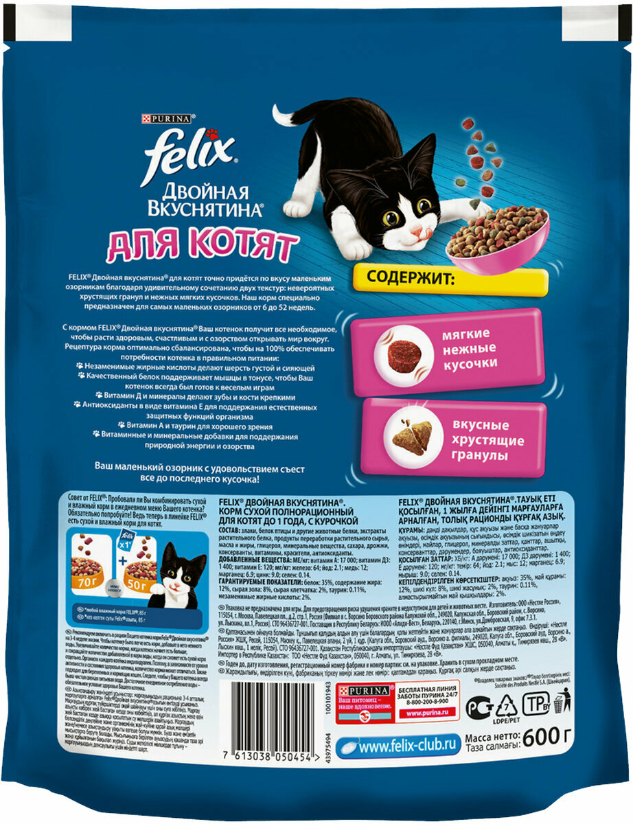 FELIX двойная вкуснятина для котят с курочкой (0,6 кг х 8 шт): сравнение цен, характеристики, фото, актуальное наличие и цены.