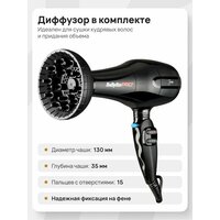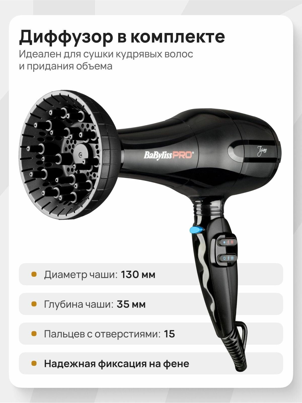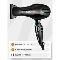 Фен BaBylissPRO Tiziano BAB6330RE, 2300 Вт, 3 температурных режима, 2 скорости, черный, 3 насадки