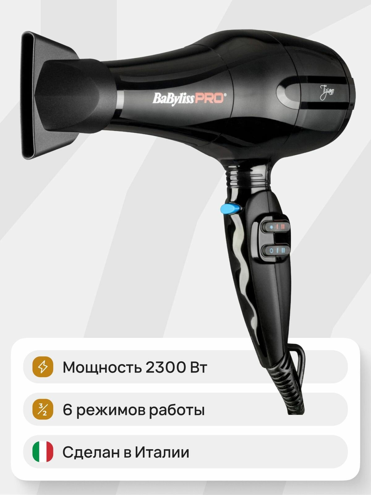 Фен BaBylissPRO Tiziano BAB6330RE, 2300 Вт, 3 температурных режима, 2 скорости, черный, 3 насадки: сравнение цен, характеристики, фото, актуальное наличие и цены.