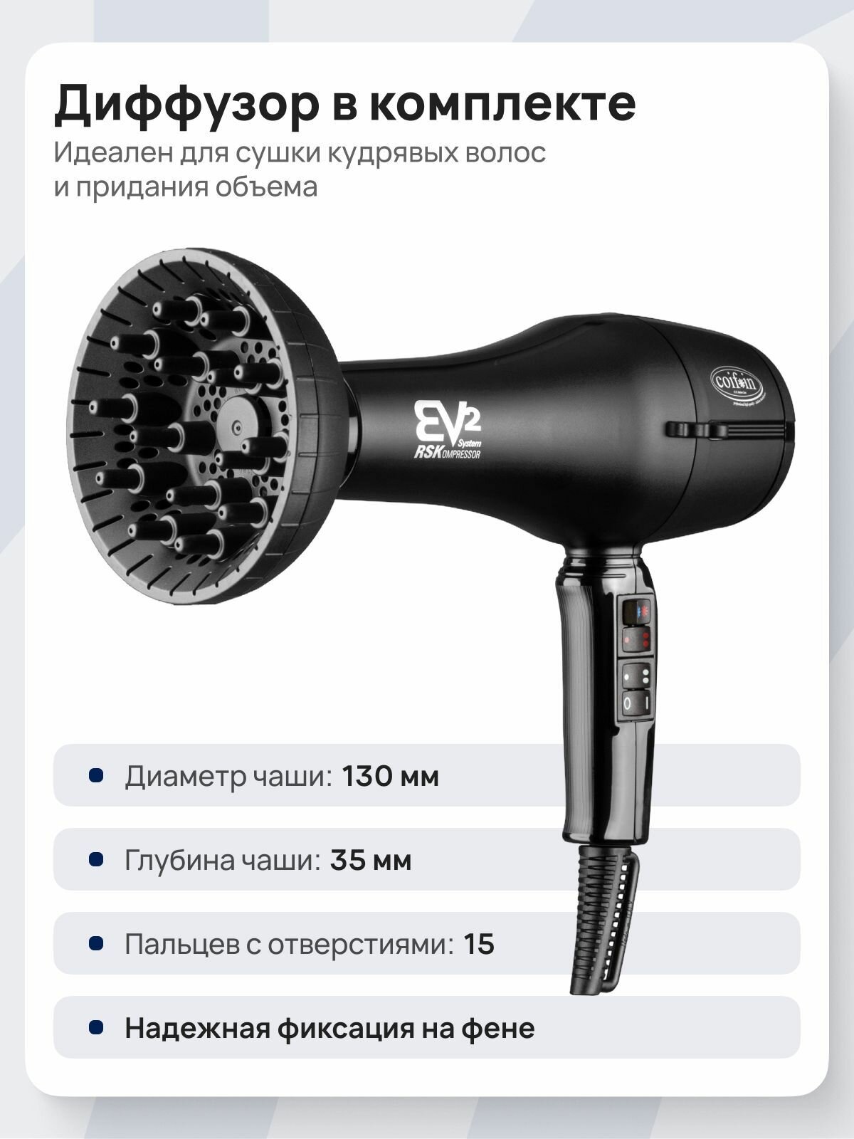 Фен Coifin EV2 R с диффузором BABD12E, профессиональный, 2300 Вт, удлиненное сопло: сравнение цен, характеристики, фото, актуальное наличие и цены.