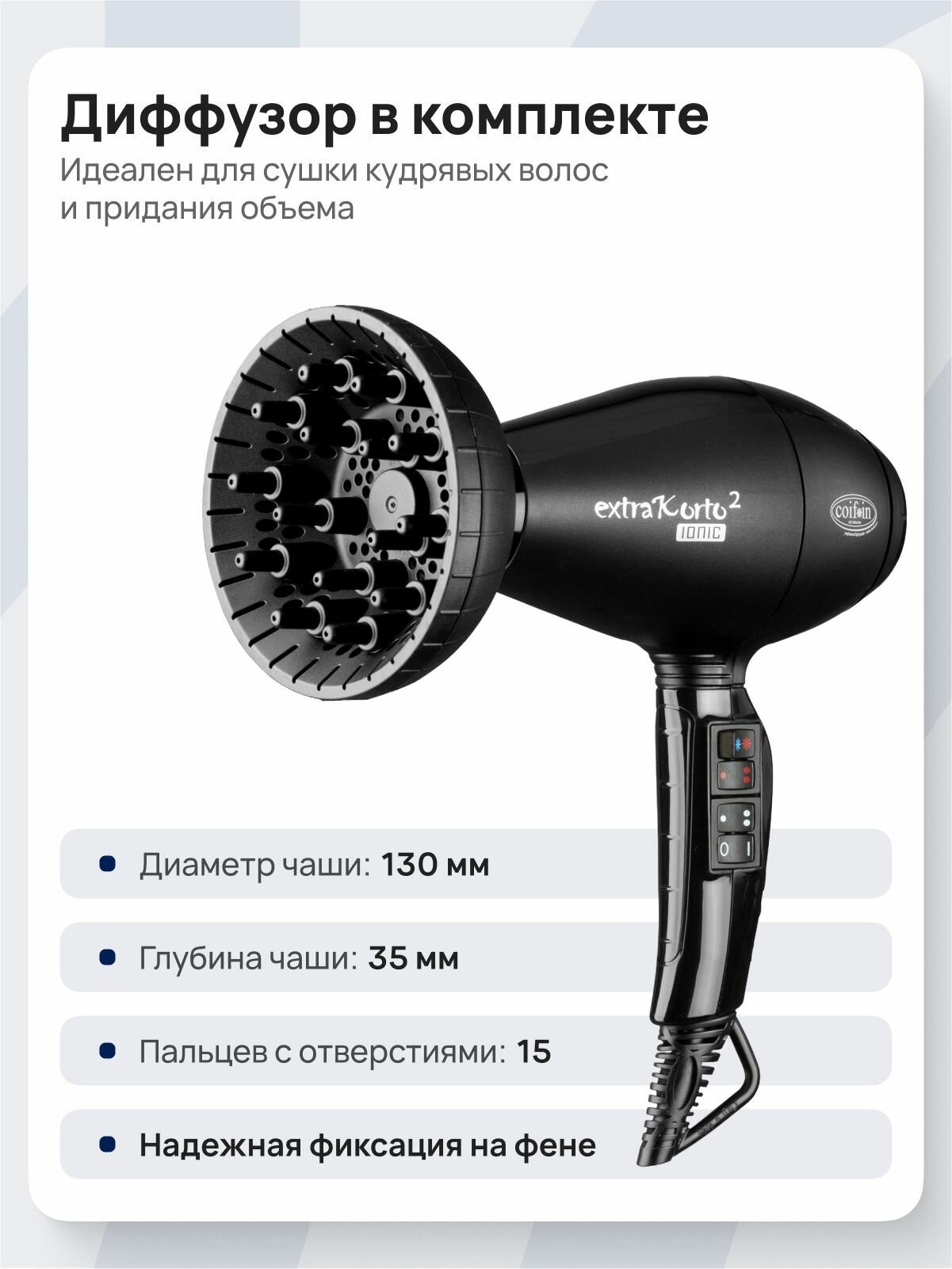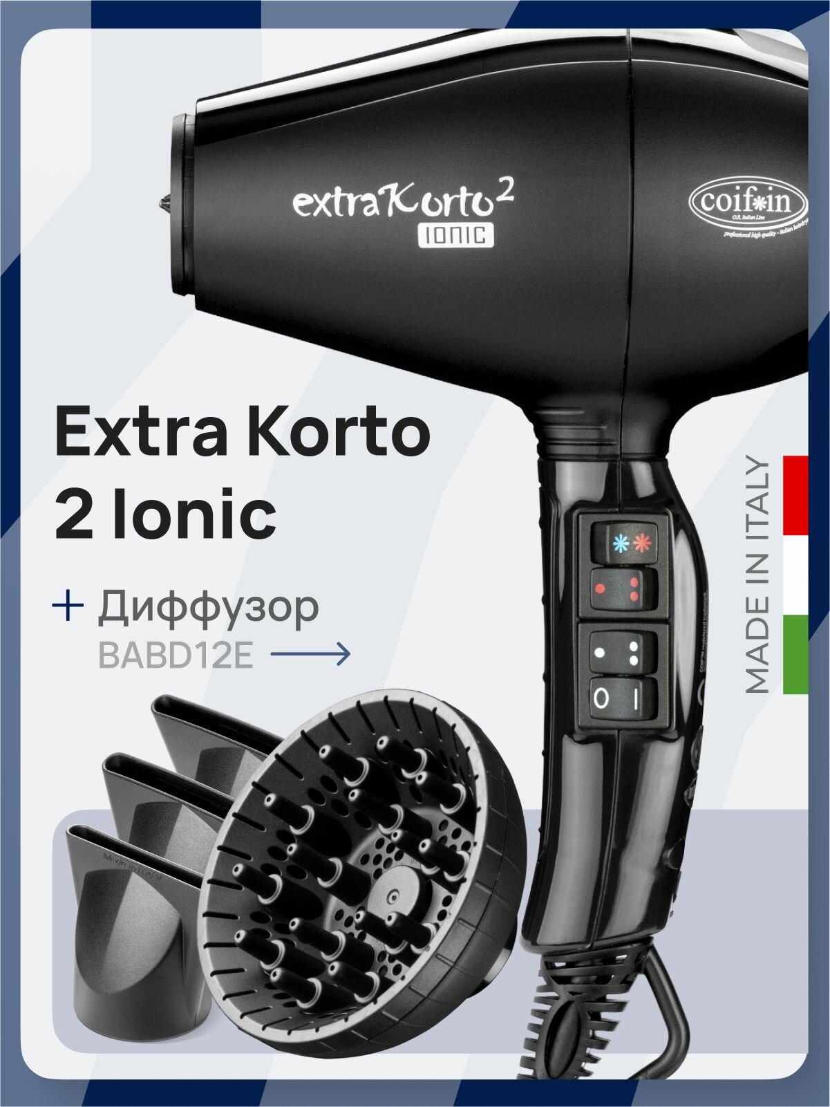 Фен Coifin Extra Korto 2 Ionic EK2R с диффузором BABD12E, профессиональный, с ионизацией, 2400 Вт, ультракомпактный: сравнение цен, характеристики, фото, актуальное наличие и цены.