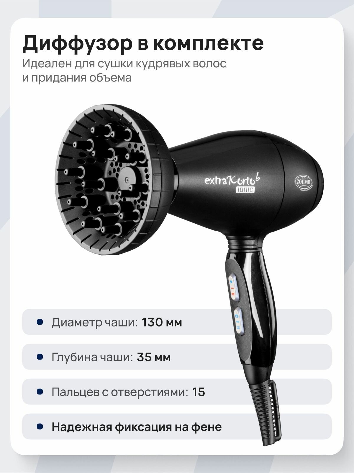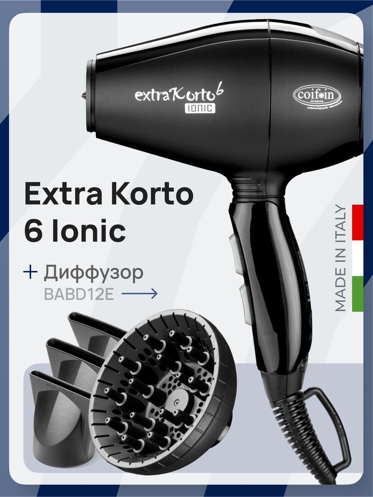 Фен Coifin Extra Korto 6 Ionic EK6K с диффузором BABD12E, профессиональный, с ионизацией, 2000 Вт, ультракомпактный: сравнение цен, характеристики, фото, актуальное наличие и цены.
