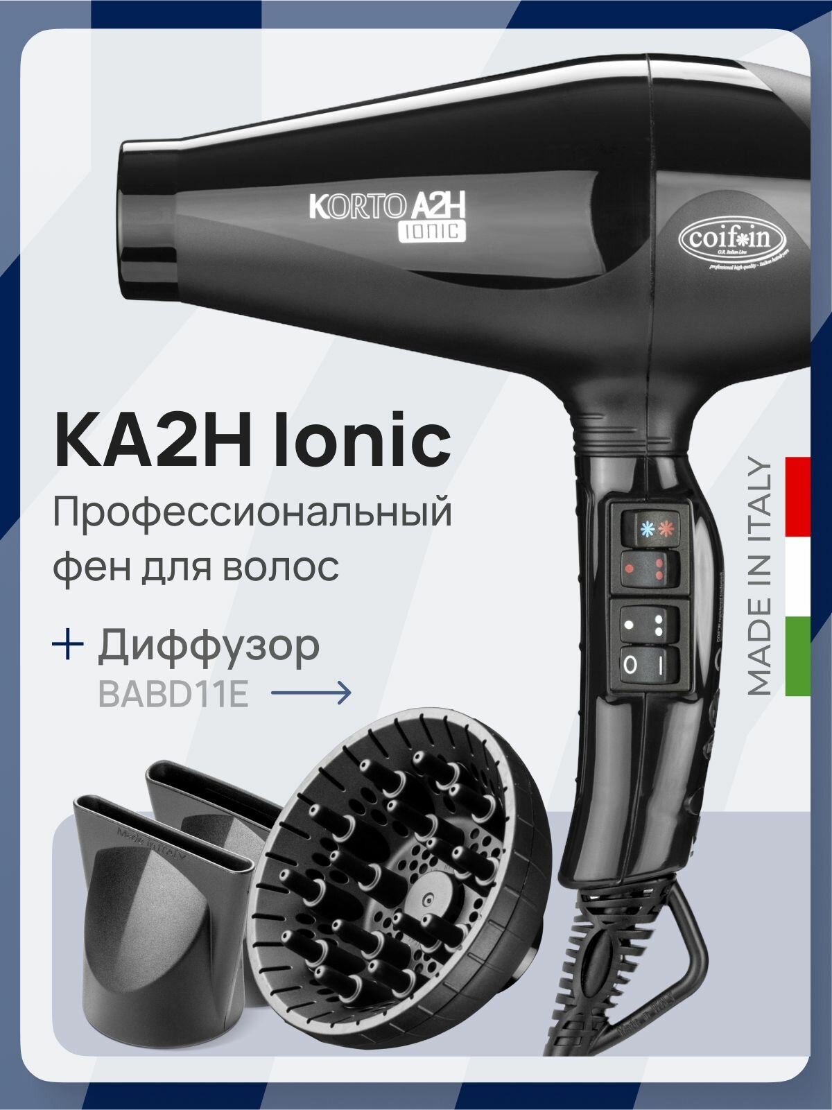 Купить Фен Coifin Korto Ionic KA2 H с диффузором BABD11E, профессиональный, с ионизацией, 2200 Вт с доставкой по всей России.