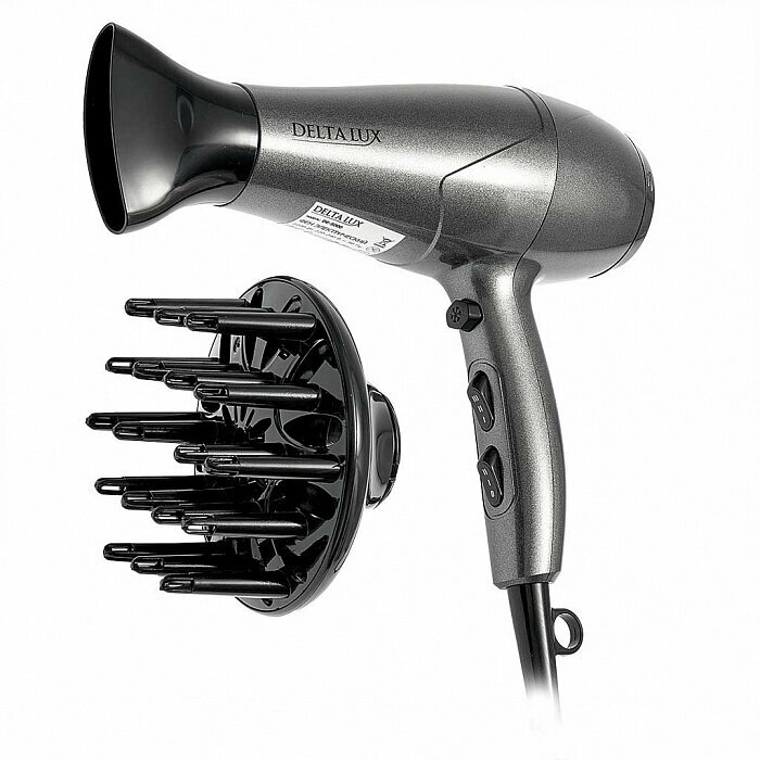 Купить Фен Delta Lux DE-5000 электрический, с насадкой диффузором, серый, 2200 Вт с доставкой по всей России.