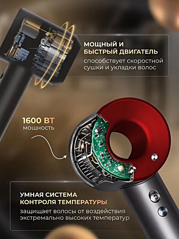 | Насадки | диффузор, для бережного высушивания, для непослушных волос, концентратор, направленный поток |
