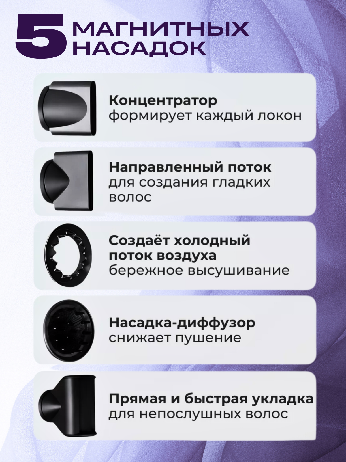 Купить Фен для волос 5в1, профессиональный, с насадками с доставкой по всей России.