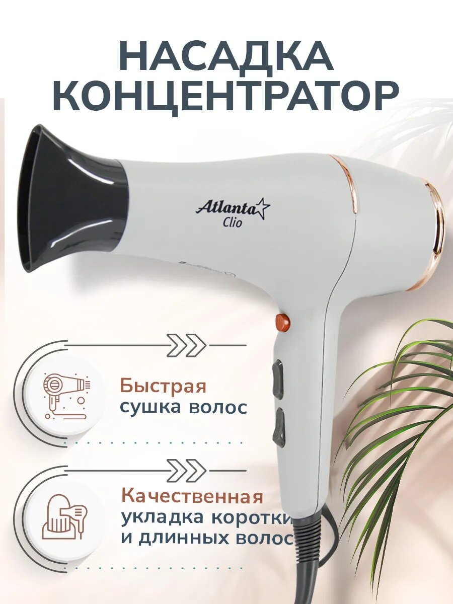 Фен для волос Atlanta ATH-6811, защита от перегрева, холодный воздух, 57°С, серый: сравнение цен, характеристики, фото, актуальное наличие и цены.